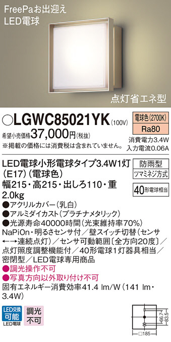 Panasonic ¥¨¥¯¥¹¥Æ¥ê¥¢¡¦¥¢¥¦¥È¥É¥¢ LGWC85021YK