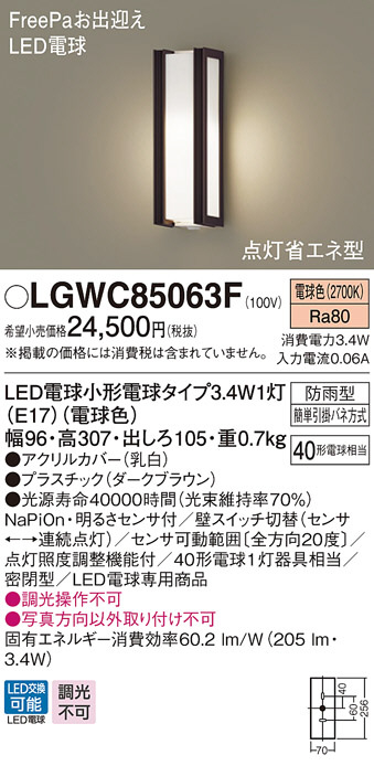 Panasonic ¥¨¥¯¥¹¥Æ¥ê¥¢¡¦¥¢¥¦¥È¥É¥¢ LGWC85063F