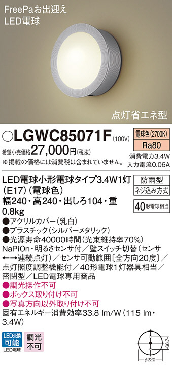 Panasonic ¥¨¥¯¥¹¥Æ¥ê¥¢¡¦¥¢¥¦¥È¥É¥¢ LGWC85071F
