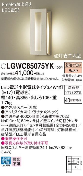 Panasonic ¥¨¥¯¥¹¥Æ¥ê¥¢¡¦¥¢¥¦¥È¥É¥¢ LGWC85075YK