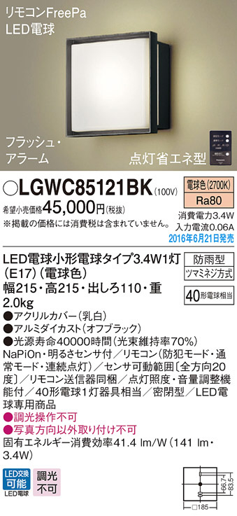 PANASONIC ¥Ñ¥Ê¥½¥Ë¥Ã¥¯ ¥¨¥¯¥¹¥Æ¥ê¥¢¡¦¥¢¥¦¥È¥É¥¢ LGWC85121BK