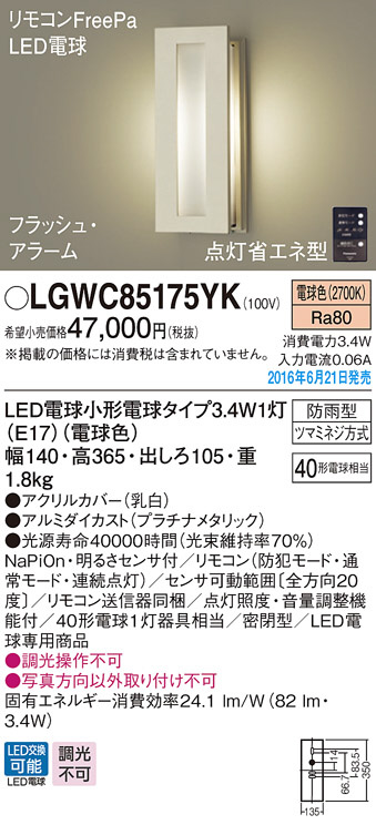 PANASONIC ¥Ñ¥Ê¥½¥Ë¥Ã¥¯ ¥¨¥¯¥¹¥Æ¥ê¥¢¡¦¥¢¥¦¥È¥É¥¢ LGWC85175YK
