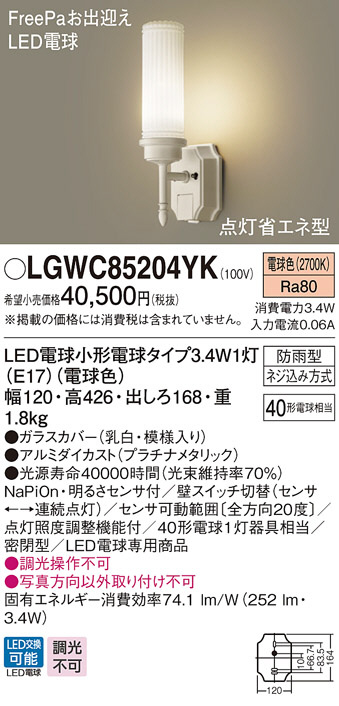Panasonic LED ¥¨¥¯¥¹¥Æ¥ê¥¢¡¦¥¢¥¦¥È¥É¥¢ LGWC85204YK