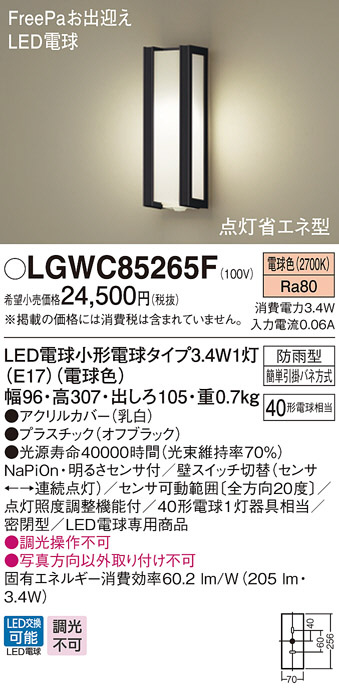 Panasonic ¥¨¥¯¥¹¥Æ¥ê¥¢¡¦¥¢¥¦¥È¥É¥¢ LGWC85265F