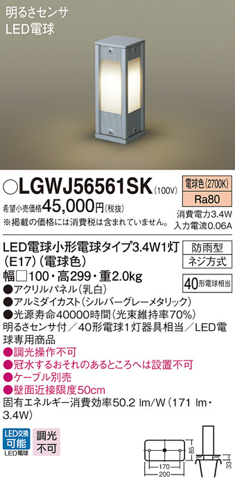Panasonic LED ¥¨¥¯¥¹¥Æ¥ê¥¢¡¦¥¢¥¦¥È¥É¥¢ LGWJ56561SK