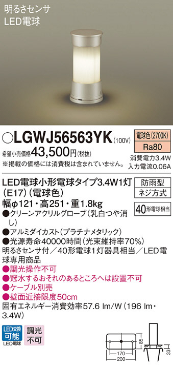 Panasonic ¥¨¥¯¥¹¥Æ¥ê¥¢¡¦¥¢¥¦¥È¥É¥¢ LGWJ56563YK