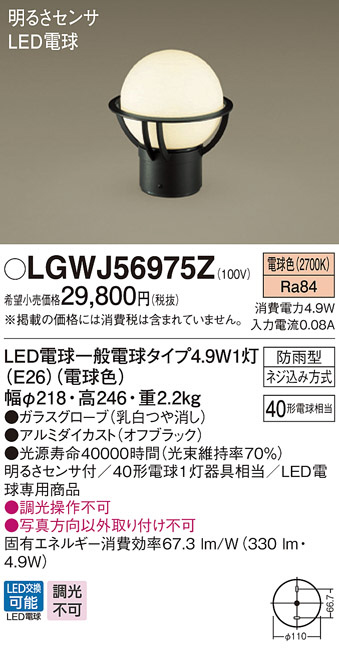 Panasonic ¥¨¥¯¥¹¥Æ¥ê¥¢¥é¥¤¥È LGWJ56975Z