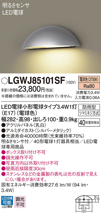 Panasonic ¥¨¥¯¥¹¥Æ¥ê¥¢¡¦¥¢¥¦¥È¥É¥¢ LGWJ85101SF