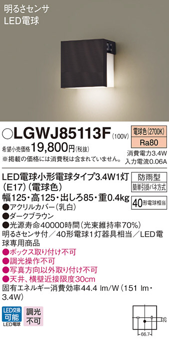 Panasonic ¥¨¥¯¥¹¥Æ¥ê¥¢¡¦¥¢¥¦¥È¥É¥¢ LGWJ85113F