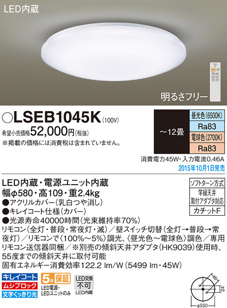PANASONIC ¥Ñ¥Ê¥½¥Ë¥Ã¥¯ ¥·¡¼¥ê¥ó¥°¥é¥¤¥È LSEB1045K