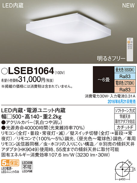 PANASONIC ¥Ñ¥Ê¥½¥Ë¥Ã¥¯ ¥·¡¼¥ê¥ó¥°¥é¥¤¥È LSEB1064