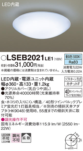 Panasonic ¥·¡¼¥ê¥ó¥°¥é¥¤¥È LSEB2021LE1