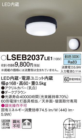 Panasonic ¥·¡¼¥ê¥ó¥°¥é¥¤¥È LSEB2037LE1