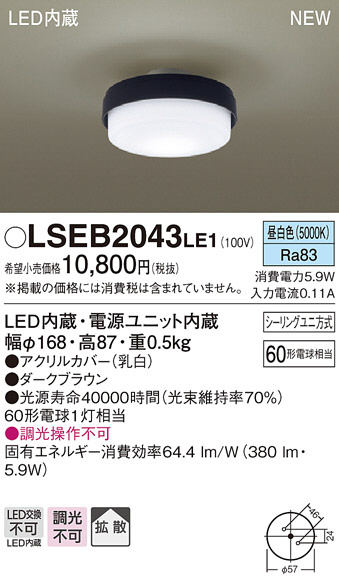 PANASONIC ¥Ñ¥Ê¥½¥Ë¥Ã¥¯ ¥·¡¼¥ê¥ó¥°¥é¥¤¥È LSEB2043LE1