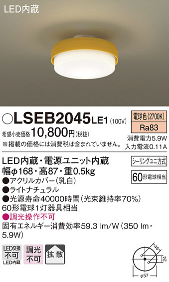 PANASONIC ¥Ñ¥Ê¥½¥Ë¥Ã¥¯ ¥·¡¼¥ê¥ó¥°¥é¥¤¥È LSEB2045LE1