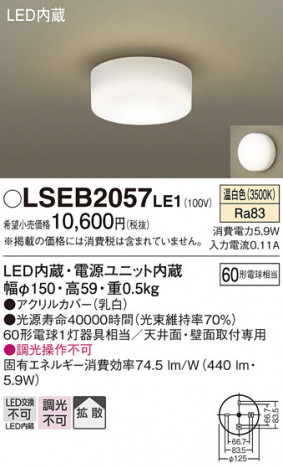 Panasonic ¥·¡¼¥ê¥ó¥°¥é¥¤¥È LSEB2057LE1
