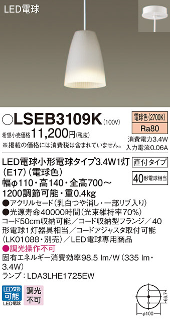 Panasonic LED ¥Ú¥ó¥À¥ó¥È¥é¥¤¥È LSEB3109K