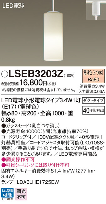 Panasonic LED ¥Ú¥ó¥À¥ó¥È¥é¥¤¥È LSEB3203Z