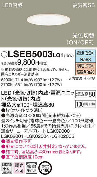 Panasonic ¥À¥¦¥ó¥é¥¤¥È LSEB5003LQ1