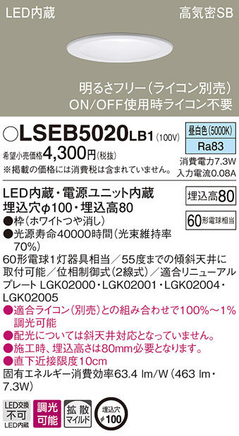 PANASONIC ¥Ñ¥Ê¥½¥Ë¥Ã¥¯ ¥À¥¦¥ó¥é¥¤¥È LSEB5020LB1