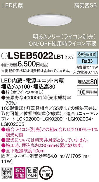 PANASONIC ¥Ñ¥Ê¥½¥Ë¥Ã¥¯ ¥À¥¦¥ó¥é¥¤¥È LSEB5022LB1