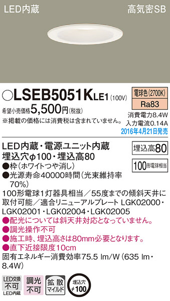 PANASONIC ¥Ñ¥Ê¥½¥Ë¥Ã¥¯ ¥À¥¦¥ó¥é¥¤¥È LSEB5051KLE1