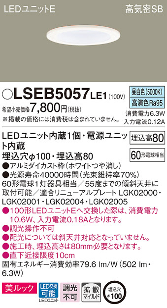Panasonic ¥À¥¦¥ó¥é¥¤¥È LSEB5057LE1