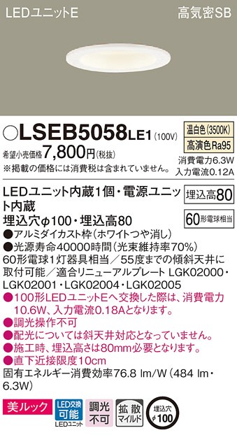 Panasonic ¥À¥¦¥ó¥é¥¤¥È LSEB5058LE1