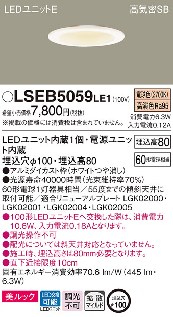 Panasonic ¥À¥¦¥ó¥é¥¤¥È LSEB5059LE1