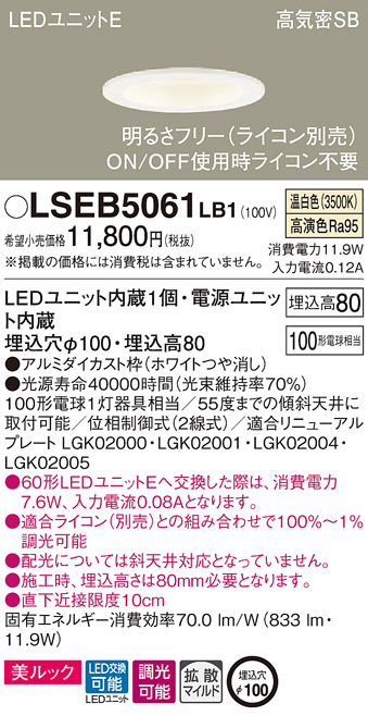 Panasonic ¥À¥¦¥ó¥é¥¤¥È LSEB5061LB1