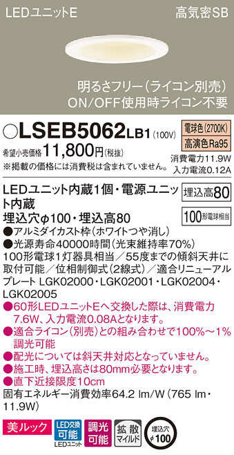 Panasonic ¥À¥¦¥ó¥é¥¤¥È LSEB5062LB1