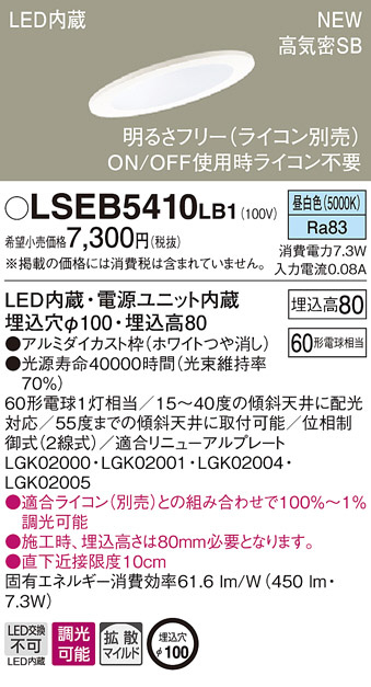 PANASONIC ¥Ñ¥Ê¥½¥Ë¥Ã¥¯ ¥À¥¦¥ó¥é¥¤¥È LSEB5410LB1