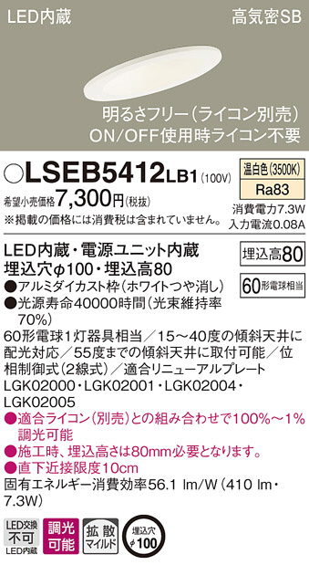 PANASONIC ¥Ñ¥Ê¥½¥Ë¥Ã¥¯ ¥À¥¦¥ó¥é¥¤¥È LSEB5412LB1