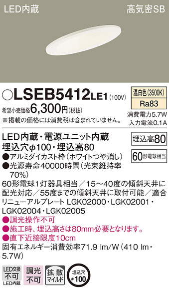 PANASONIC ¥Ñ¥Ê¥½¥Ë¥Ã¥¯ ¥À¥¦¥ó¥é¥¤¥È LSEB5412LE1