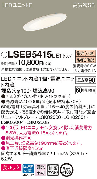 Panasonic ¥À¥¦¥ó¥é¥¤¥È LSEB5415LE1
