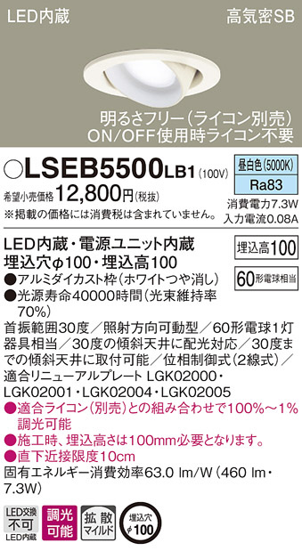 PANASONIC ¥Ñ¥Ê¥½¥Ë¥Ã¥¯ ¥À¥¦¥ó¥é¥¤¥È LSEB5500LB1