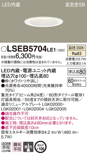 PANASONIC ¥Ñ¥Ê¥½¥Ë¥Ã¥¯ ¥À¥¦¥ó¥é¥¤¥È LSEB5704LE1