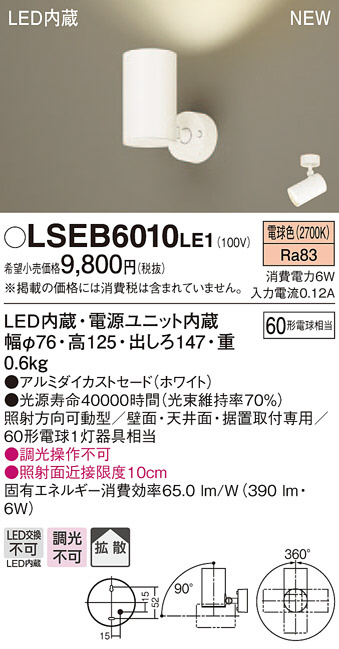 Panasonic LED ¥¹¥Ý¥Ã¥È¥é¥¤¥È LSEB6010LE1