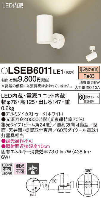 Panasonic LED ¥¹¥Ý¥Ã¥È¥é¥¤¥È LSEB6011LE1