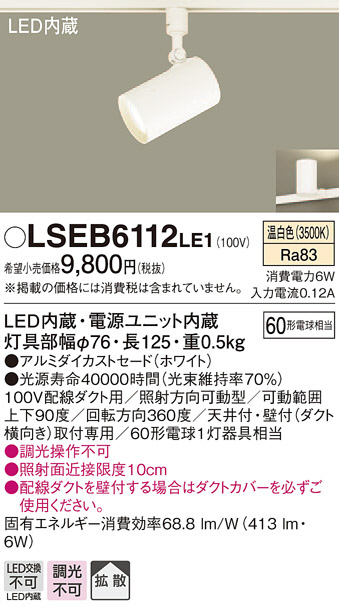 Panasonic LED ¥¹¥Ý¥Ã¥È¥é¥¤¥È LSEB6112LE1