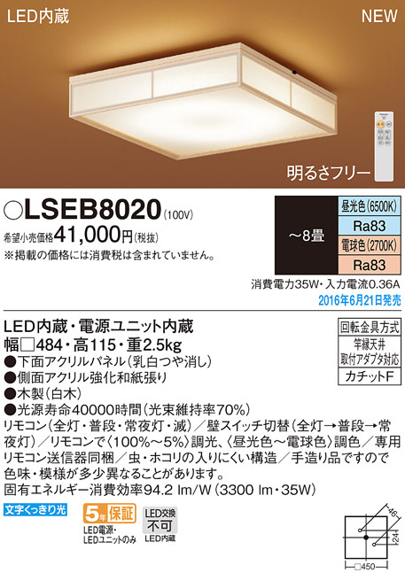 PANASONIC ¥Ñ¥Ê¥½¥Ë¥Ã¥¯ ¥·¡¼¥ê¥ó¥°¥é¥¤¥È LSEB8020