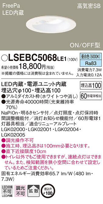 Panasonic ¥À¥¦¥ó¥é¥¤¥È LSEBC5068LE1