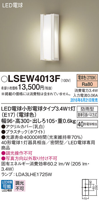 PANASONIC ¥Ñ¥Ê¥½¥Ë¥Ã¥¯ ¥¨¥¯¥¹¥Æ¥ê¥¢¡¦¥¢¥¦¥È¥É¥¢ LSEW4013F