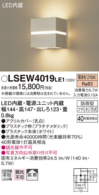 Panasonic ¥¨¥¯¥¹¥Æ¥ê¥¢¡¦¥¢¥¦¥È¥É¥¢ LSEW4019LE1