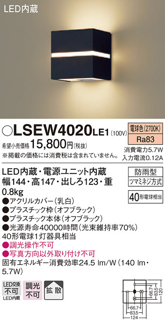Panasonic ¥¨¥¯¥¹¥Æ¥ê¥¢¡¦¥¢¥¦¥È¥É¥¢ LSEW4020LE1