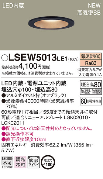 PANASONIC ¥Ñ¥Ê¥½¥Ë¥Ã¥¯ ¥À¥¦¥ó¥é¥¤¥È LSEW5013LE1