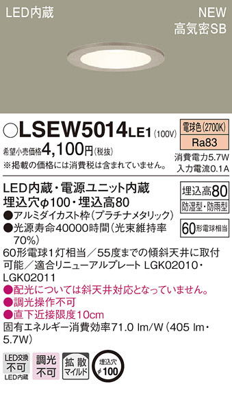 PANASONIC ¥Ñ¥Ê¥½¥Ë¥Ã¥¯ ¥À¥¦¥ó¥é¥¤¥È LSEW5014LE1