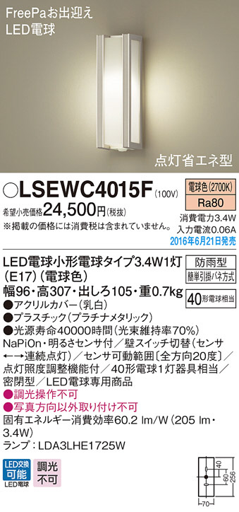 PANASONIC ¥Ñ¥Ê¥½¥Ë¥Ã¥¯ ¥¨¥¯¥¹¥Æ¥ê¥¢¡¦¥¢¥¦¥È¥É¥¢ LSEWC4015F