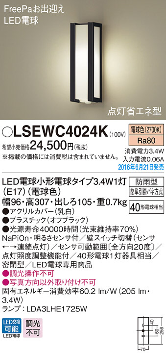 PANASONIC ¥Ñ¥Ê¥½¥Ë¥Ã¥¯ ¥¨¥¯¥¹¥Æ¥ê¥¢¡¦¥¢¥¦¥È¥É¥¢ LSEWC4024K