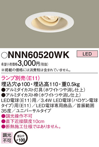 Panasonic ¥æ¥Ë¥Ð¡¼¥µ¥ë¥À¥¦¥ó¥é¥¤¥È NNN60520WK